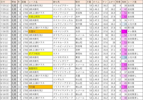 どうも、ダート予想のかえるんです。この記事では7週にわたって行われていた札幌開催を振り返っていきます。 勝ち馬の分解指数表が当ブログのメインコンテンツとなっております。単純なレースレベル比較をする際にはかなり役立つと思うので、ぜひ参考にして…