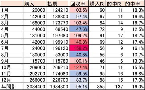 kaerun4451.hateblo.jp 先月の収支報告を貼っておく。今月は前半厳しかったが巻き返した。 収支報告 4/6(土) 購入6000円 払戻8750円 4/7(日) 購入7000円 払戻0円 4/13(土) 購入6000円 払戻0円 4/14(日) 購入6000円 払戻0円 4/20(土) 購入7500円 払戻5800円 4…
